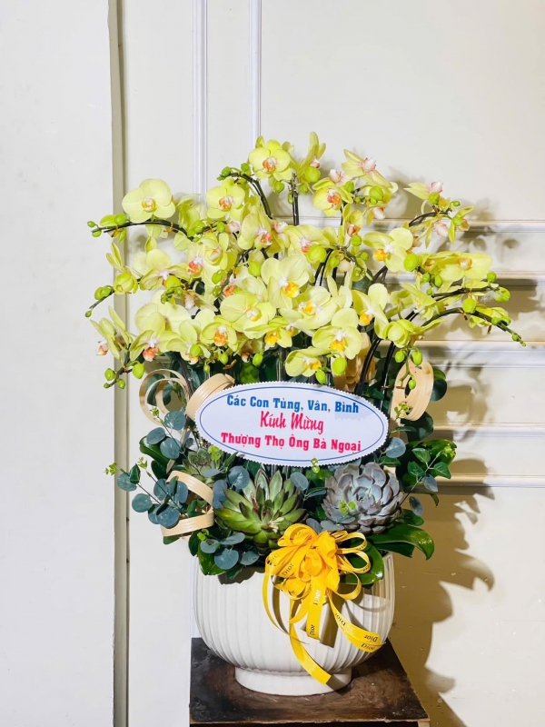 🎁Mẫu hoa thiết kế sang trọng, lịch lãm kèm lời chúc kinh doanh phát đạt, suôn sẻ và buôn may bán đắt.